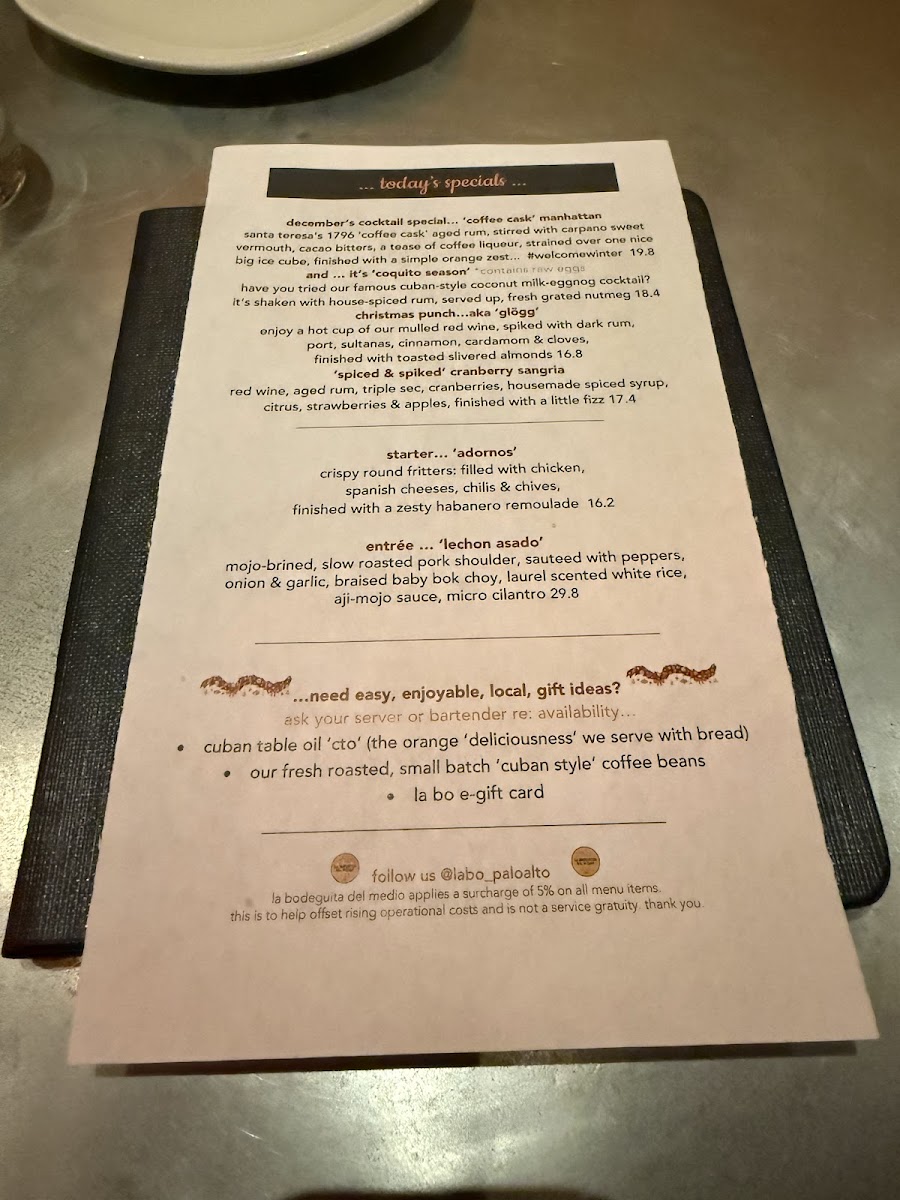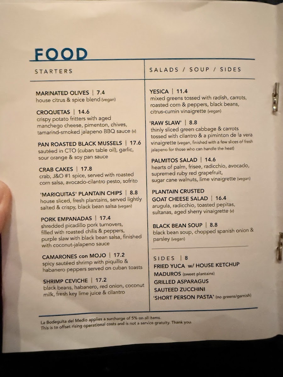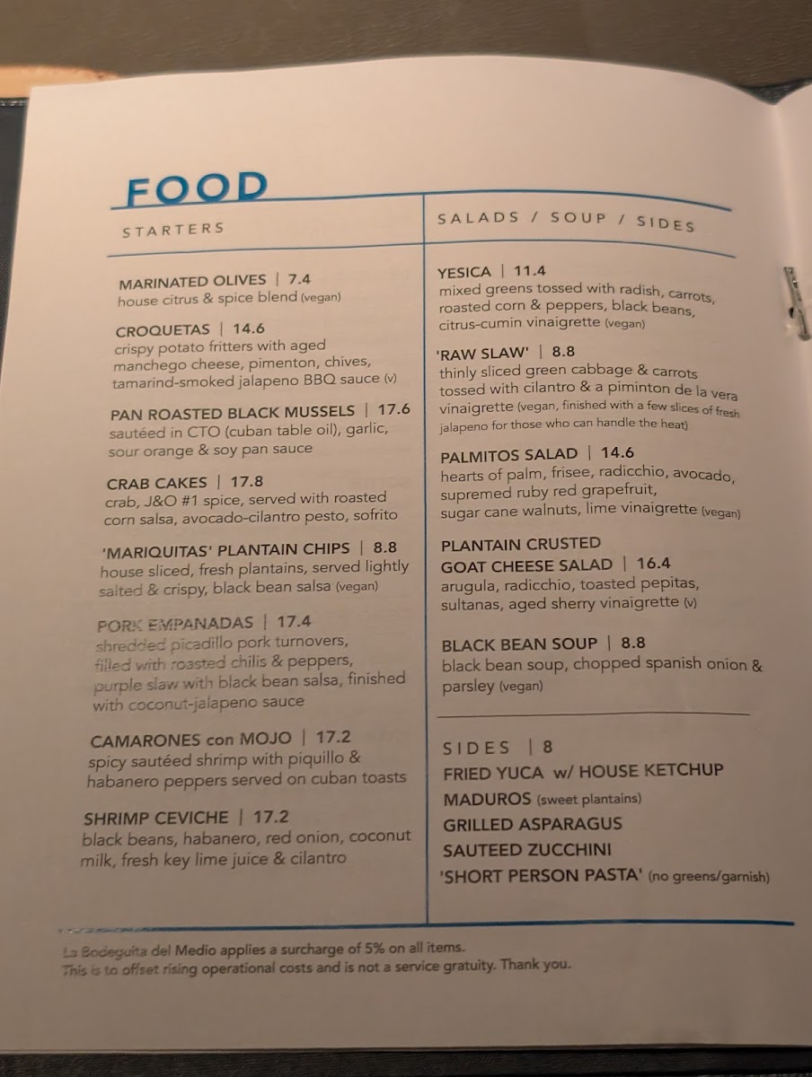 The menu at La Bodeguita del Medio features a diverse selection that reflects its blend of Cuban, Caribbean, Latin American, and Californian influences. It is organized into several key categories, offering a range of options suitable for casual dining and social gatherings.
