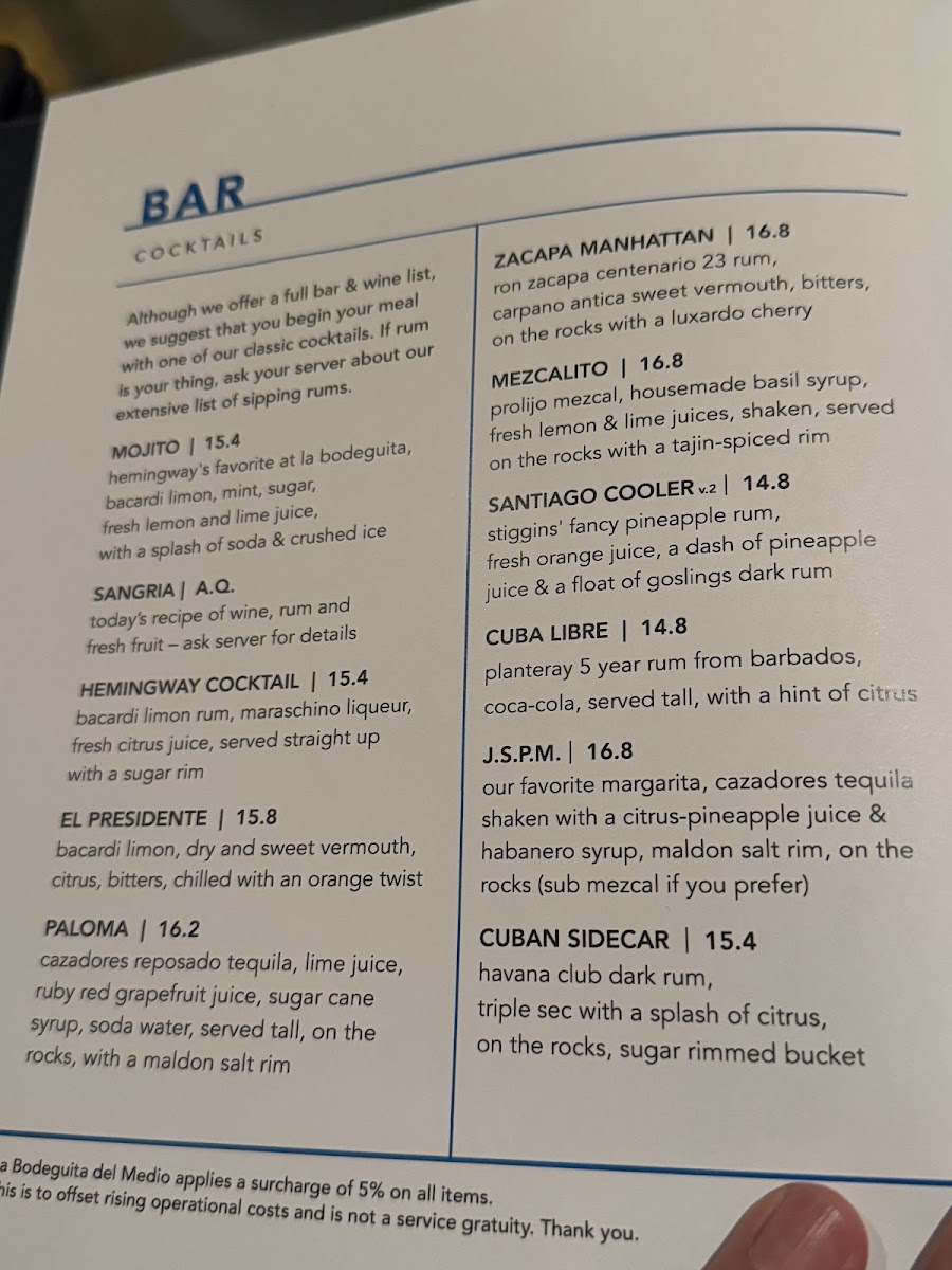 La Bodeguita del Medio Menu